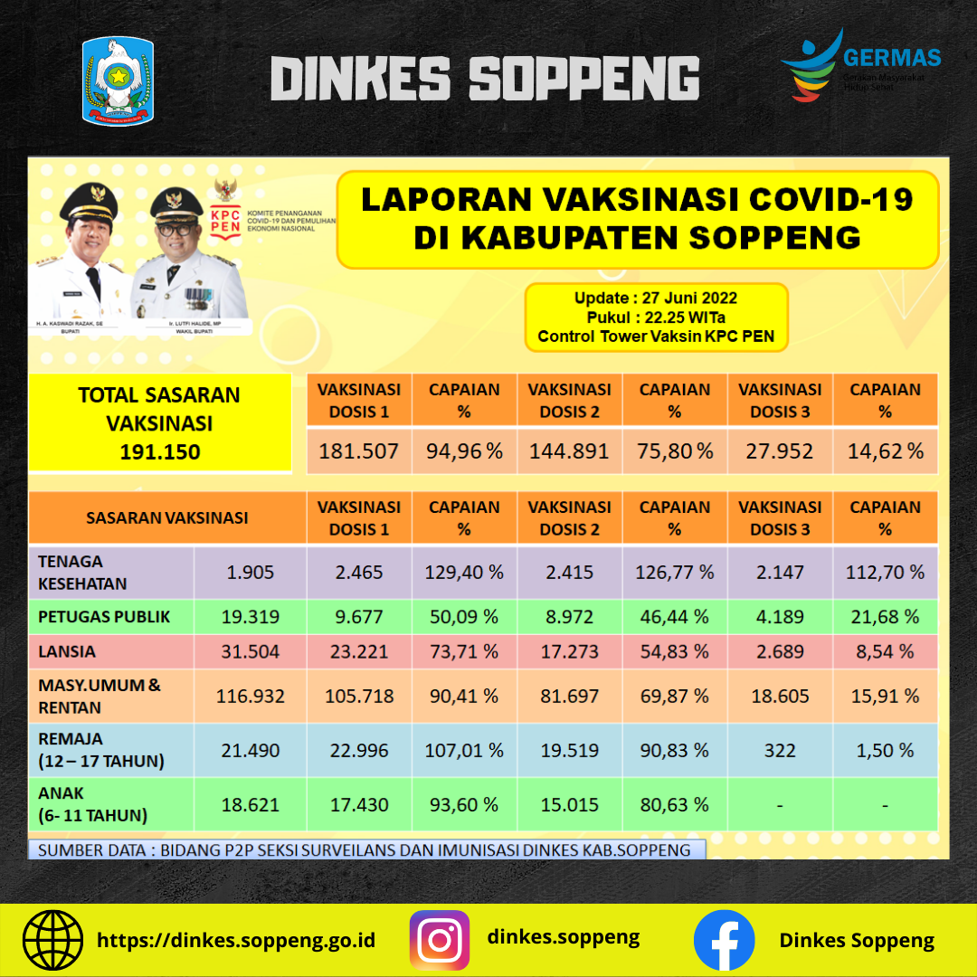 Update 27 Juni 2022 Vaksinasi Covid-19 di Kab. Soppeng